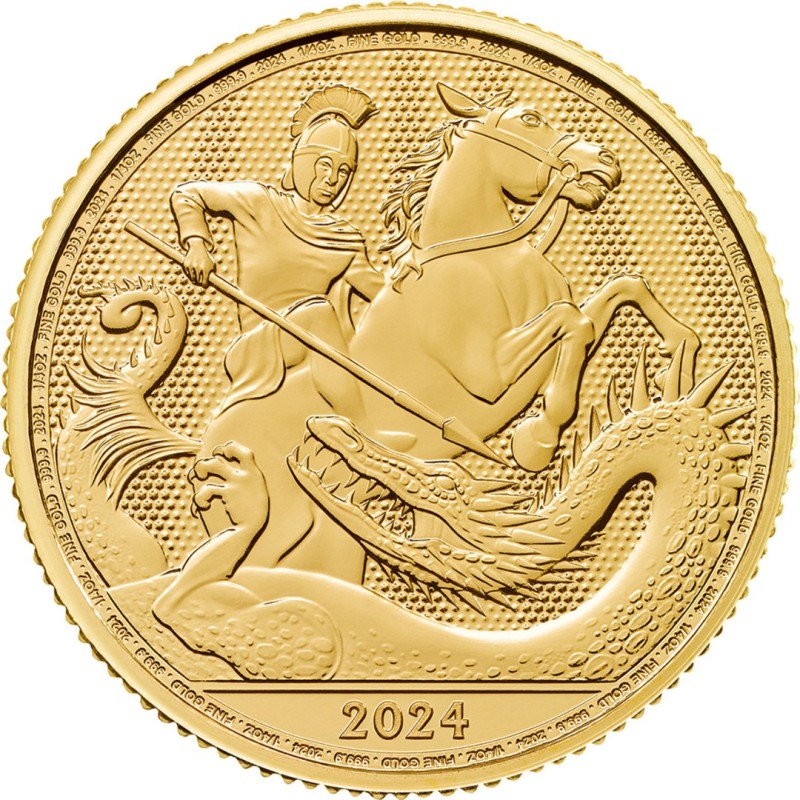 Золотая монета Великобритании Святой Георгий и дракон